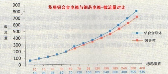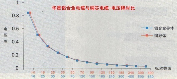 鋁合金電纜和銅芯電纜在同截面同等長度的情況下,其導電率是銅電纜的 61.8%,載流量約為銅電纜的78%,但其質量不到同等電氣性能銅纜的一半。根據電纜截面的規格分布,將鋁合金電纜的截面增大1.5倍左右,載流量與電壓降等電氣參數與銅纜相當,因此在已知銅電纜型號規格的前提下,只需按照70及70以下小規格的銅纜對應使用加大一個規格的鋁合金電纜,95及95以上直接對應使用加大兩個個規格的鋁合金電纜即可,其電氣性能、機械性能及相應的應用指標與原銅芯電纜設計標準一致,其實際使用性能更優于原有的銅芯電纜設計標準。